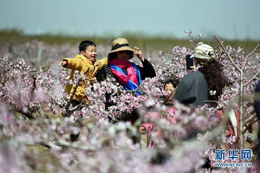 3月30日,游客在郯城县马头镇桑庄村的“农家花园”里赏花游玩。 新华社发(房德华 摄)