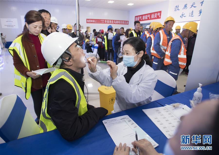 3月31日,医护人员对中建三局建设者进行口腔检查。