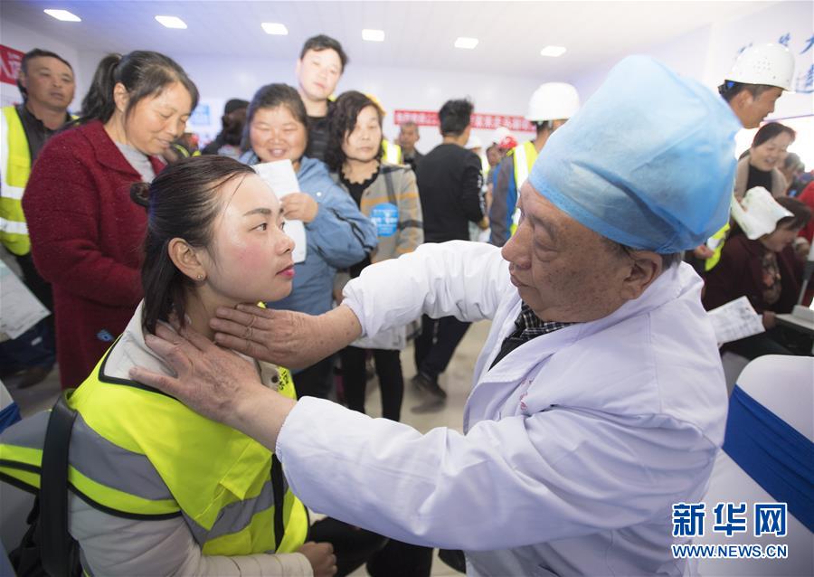3月31日,医护人员对建设工人进行外科检查。 新华社记者肖艺九摄