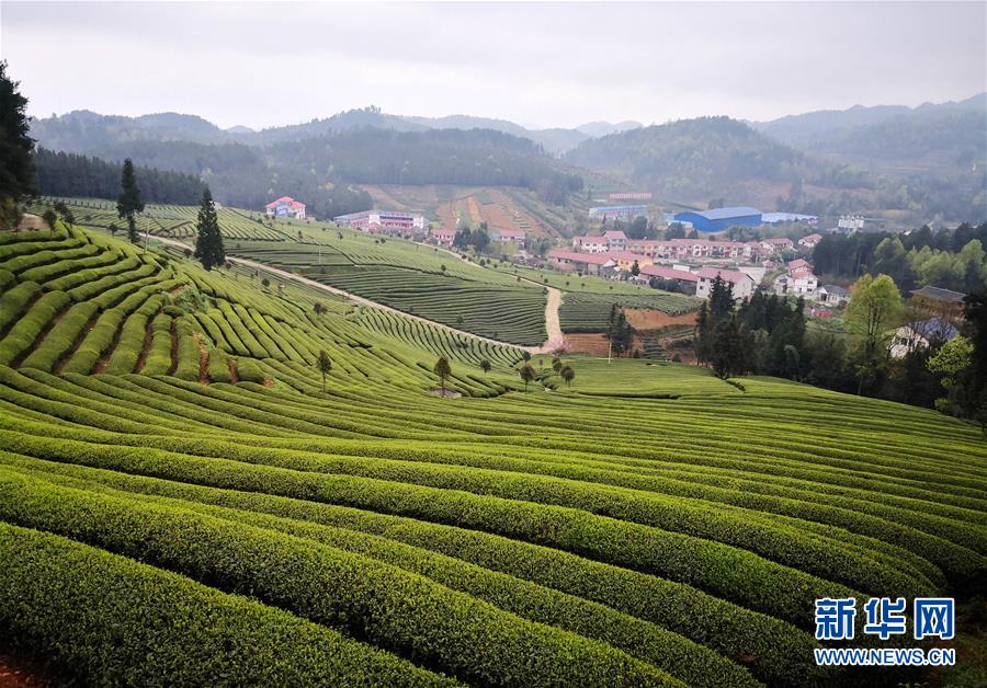 这是3月31日拍摄的贵州省余庆县松烟镇一处茶场(手机拍摄)。随着气温回升,贵州省遵义市余庆县各大茶场迎来“明前茶”采摘高峰。采茶工人忙着采摘、制茶,供应市场。新华社记者 杨文斌 摄