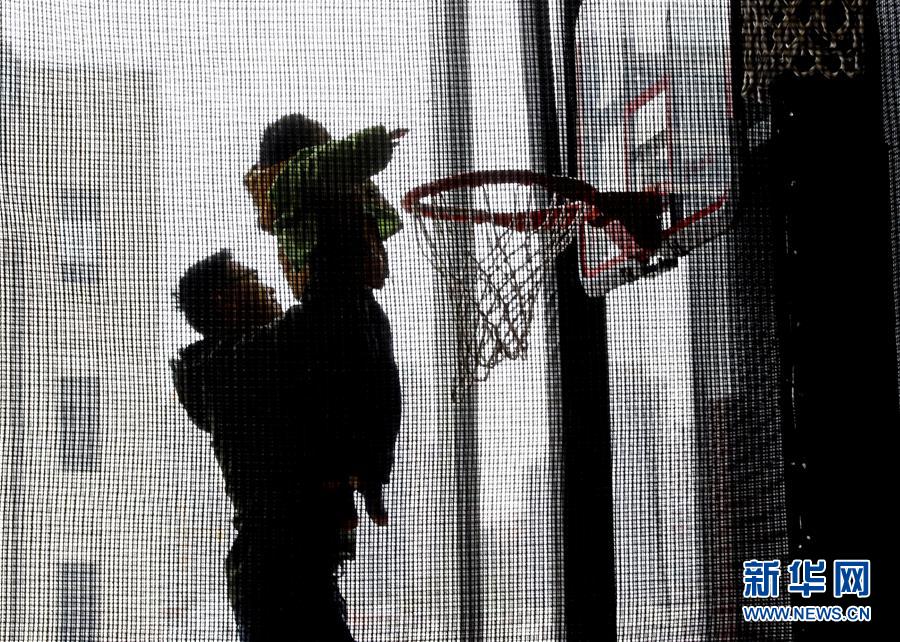 3月31日,活动现场一名自闭症儿童在篮筐前被父亲高高举起。