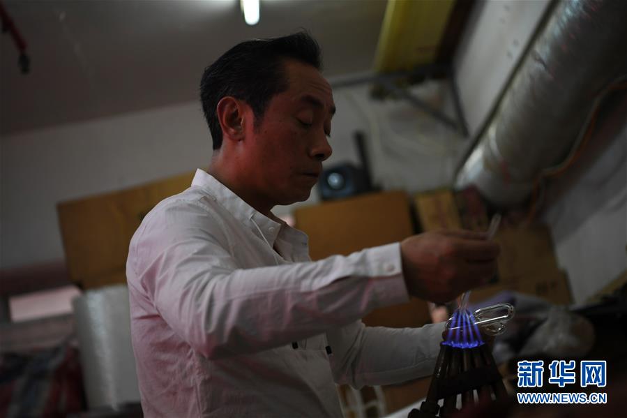 香港霓虹灯手艺人胡智楷在制作霓虹灯广告招牌(3月19日摄)。 新华社记者 吕小炜 摄