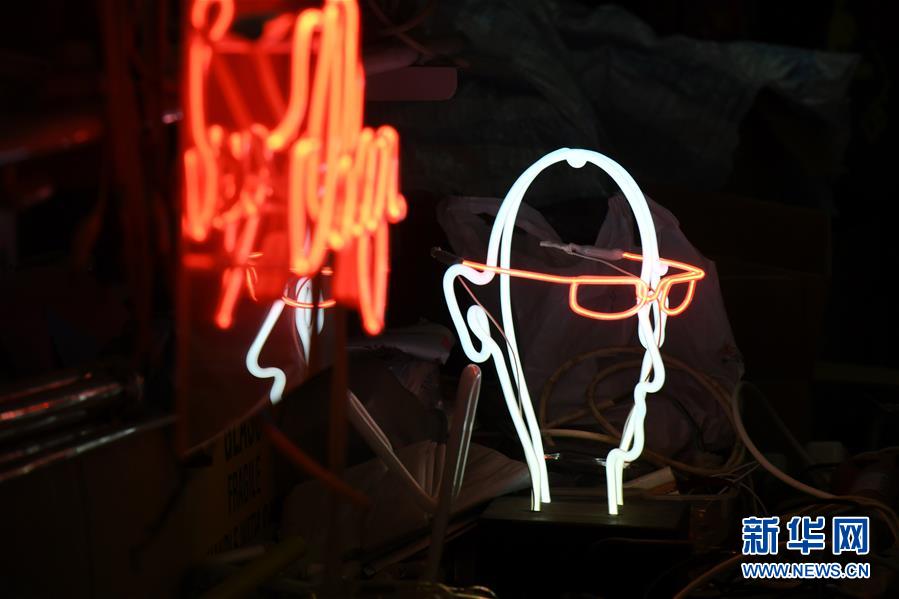 这是3月19日拍摄的香港霓虹灯手艺人胡智楷制作的霓虹灯作品。 新华社记者 吕小炜 摄