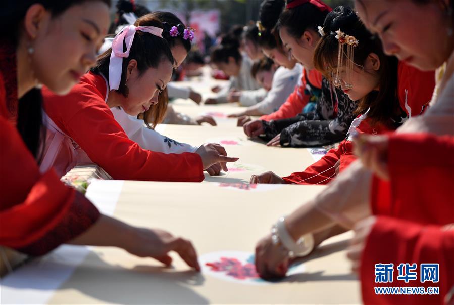 4月1日,演员们在启动仪式上表演手绣牡丹。新华社记者 李嘉南 摄