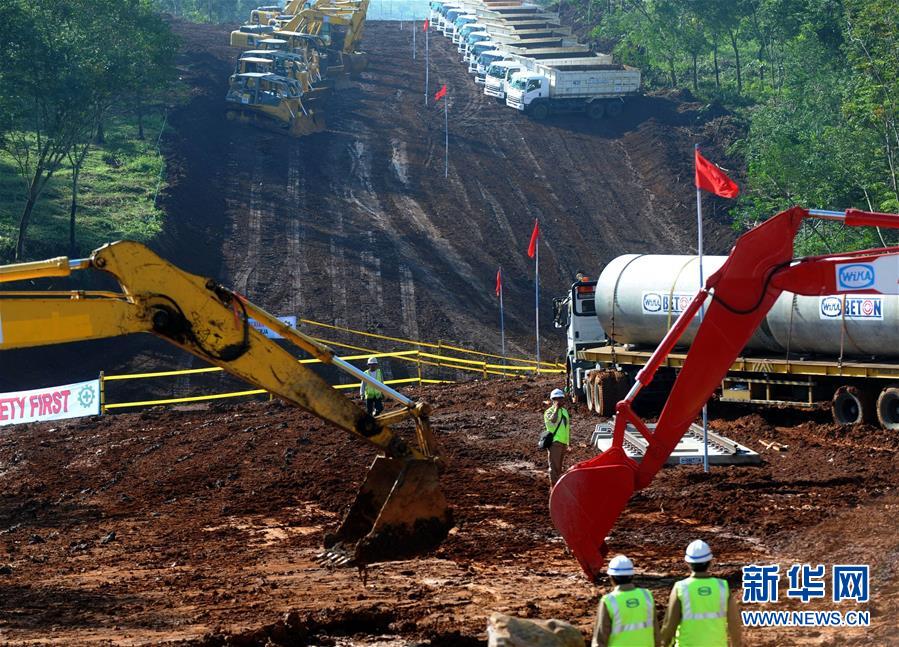 这是2016年1月21日,在印度尼西亚西爪哇省瓦利尼,工人为雅万高速铁路开工仪式做准备。新华社发(阿贡摄)