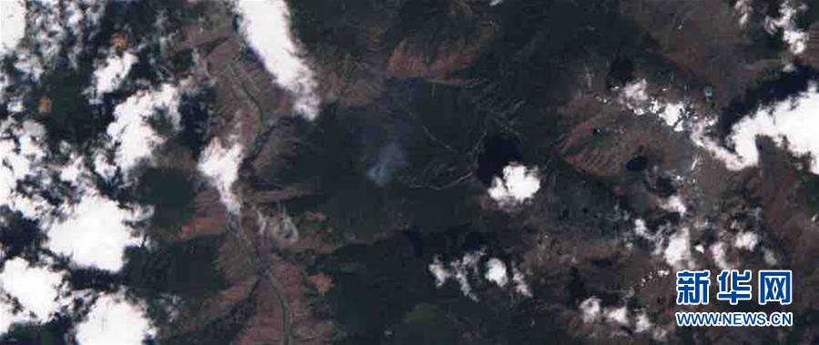 这是3月31日拍摄的木里火灾(中间冒烟处)卫星图片。