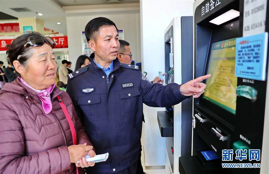 4月1日,河北省秦皇岛市公安局出入境管理支队民警在帮助市民办理出入境相关业务。新华社发(曹建雄 摄)