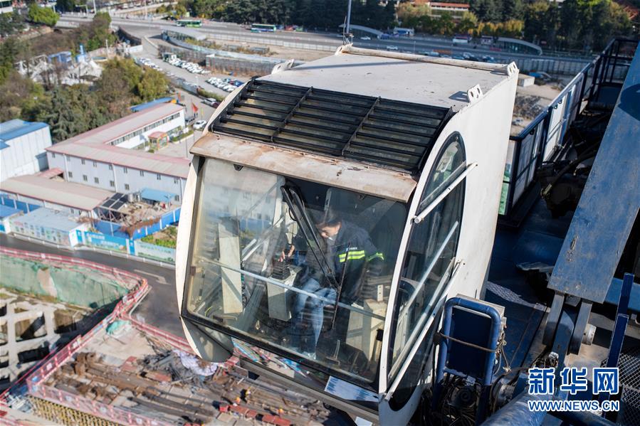 3月7日,刘家琼在70多米的空中熟练地操纵着塔吊。 新华社记者胡超摄