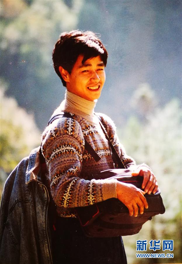 青方华24岁时背着炸药上山修路(翻拍照片)。当选小坝村党支部书记18年,青方华领着乡亲修路架桥,发展产业。2016年,小坝村摘掉贫困村的帽子,成为乡里首个人均收入过万元的村。 新华社发