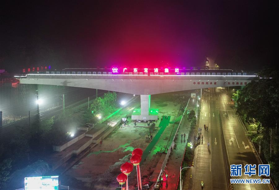 4月2日凌晨,转体桥完成转体(无人机拍摄)。新华社记者刘大伟摄