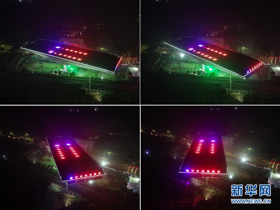 转体桥转体时的场景(拼版照片,4月2日无人机拍摄)。新华社记者刘大伟摄