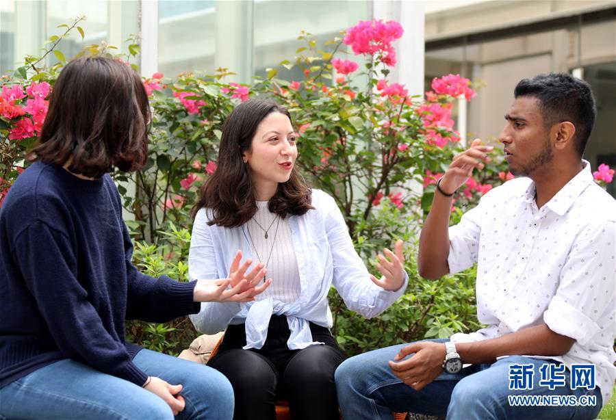 恰肯(中)与同学在一起(3月26日摄)。 新华社记者 吴晓初 摄