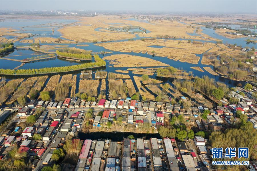 3月31日无人机拍摄的雄安新区白洋淀。 新华社记者王晓摄