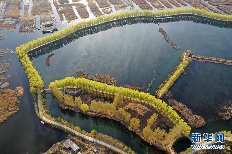 3月31日无人机拍摄的雄安新区白洋淀。 新华社记者朱旭东摄