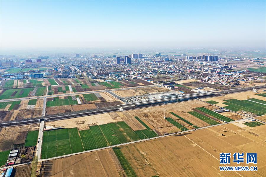 4月1日无人机拍摄的雄安新区白洋淀站。 新华社记者王建华摄