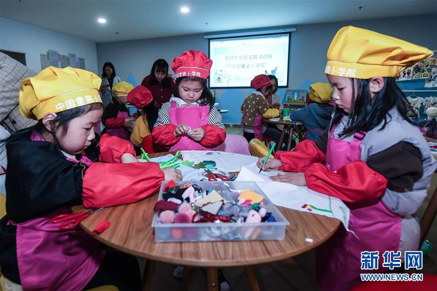 4月2日,织里镇晟舍幼儿园的孩子们在老师带领下参加“童装小学院”特色课程,设计并制作一块特色手帕。 新华社记者 徐昱 摄