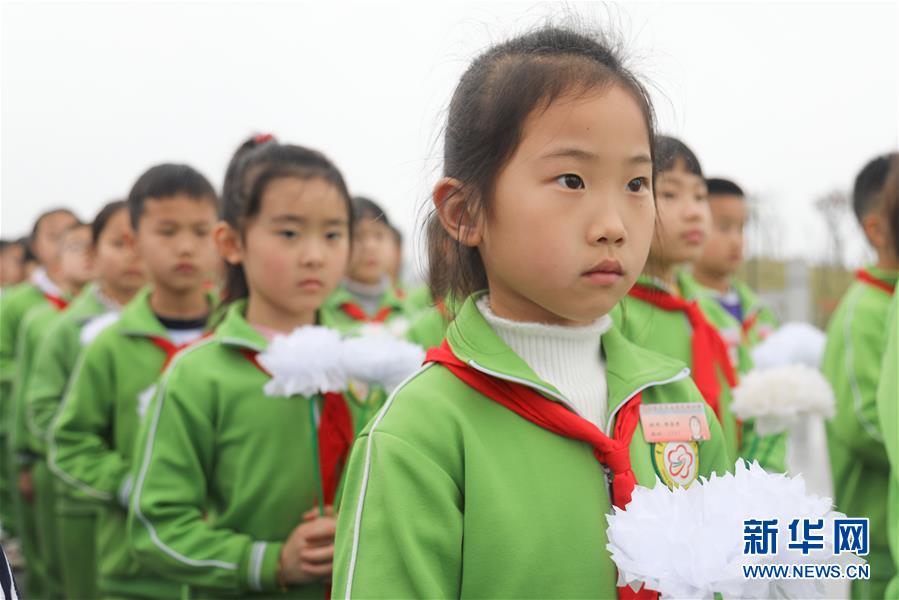 4月2日,在湖南省湘西土家族苗族自治州吉首市烈士公园,少先队员在纪念碑前缅怀先烈。 新华社发(刘振军 摄)