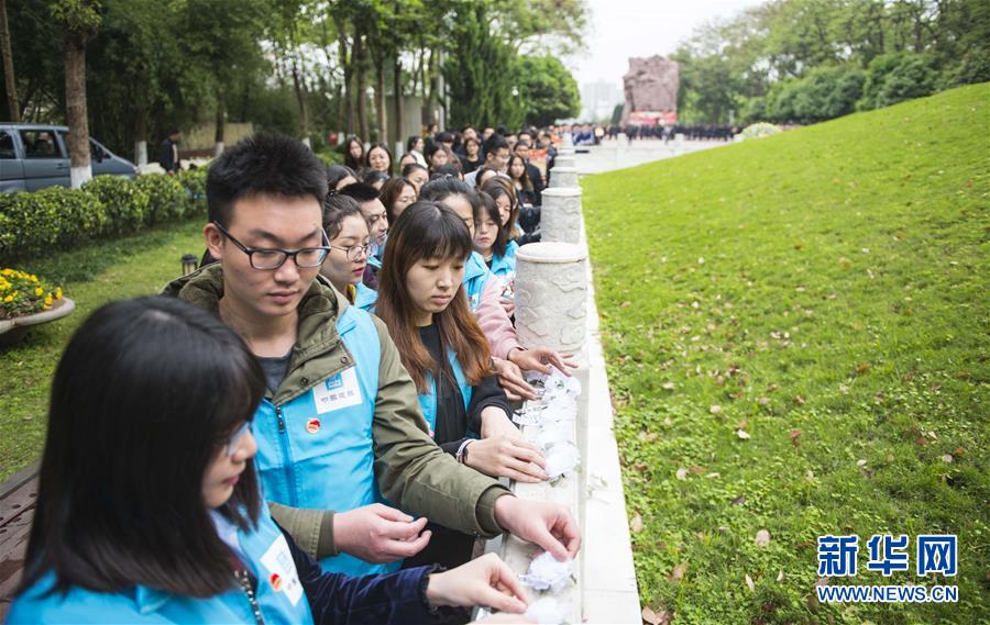 4月2日,群众在活动现场向革命烈士敬献白花。 新华社发
