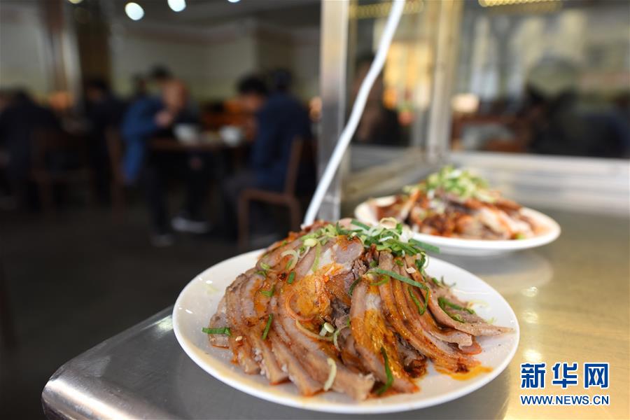 这是兰州市一家牛肉面馆中售卖的小菜(4月2日摄)。 兰州牛肉面是“中式三大快餐”之一,拥有百年历史。它以“一清(汤清)、二白(萝卜片白)、三红(辣椒油红)、四绿(香菜、蒜苗绿)、五黄(面条黄亮)”的特色而蜚声中外。经过反复揉搓的面团在牛肉面师傅手中变化成粗细不一、圆扁不同的十余种面型。决定牛肉面味道的关键是浇在面条上的“老汤”,各个店家都有自己独特的汤料配方。从下锅煮面到端上餐桌,短短几分钟,一碗热腾腾的牛肉面便制作完成。冒着热气的汤面搭配各色辅料让食客唇齿留香,受到广泛欢迎。 新华社记者马宁摄
