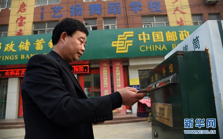 3月20日,张景宪将新一批写好的信件投到信箱里准备寄出。新华社记者 王凯 摄