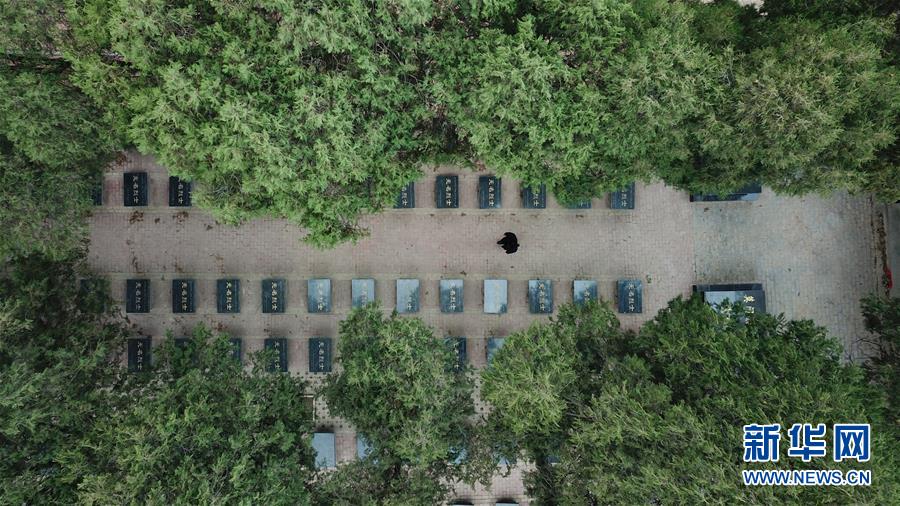 3月21日,张景宪走在张和庄烈士陵园内(无人机拍摄)。新华社记者 王南 摄