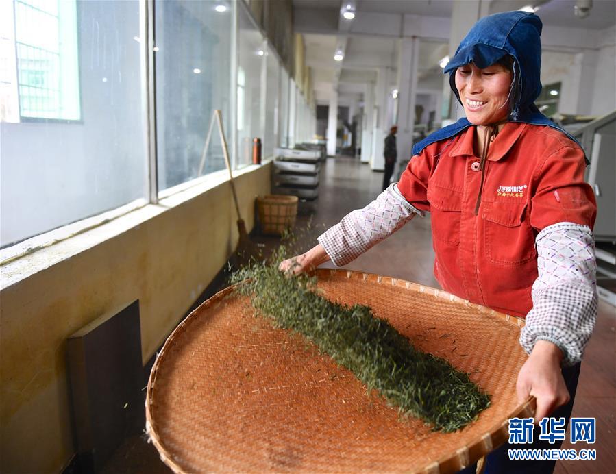 4月3日,浮梁县臧湾乡茶农在新佳茶园基地进行抖筛工序。 日前,江西浮梁县绿茶迎来全面开采期,茶园里一派忙碌景象。近年来,江西浮梁县依托生态优势,大力发展茶产业。目前,全县共有茶园近16万亩,通过开展“公司+合作社+农户”的产业模式,带动全县350余户实现脱贫致富。 新华社记者 胡晨欢 摄