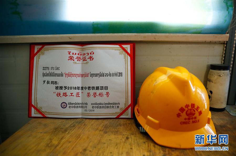 在老挝北部琅南塔省,“铁路工匠”的证书被罗毅摆在宿舍床头桌上(3月21日摄)。新华社记者 王婧嫱 摄