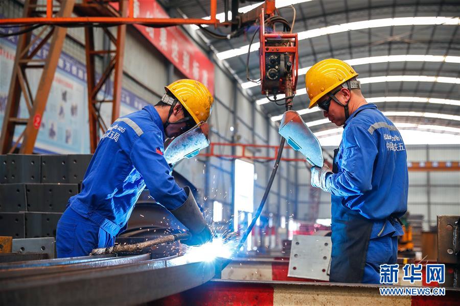 3月21日,在老挝北部琅南塔省,罗毅(左)在他的中国师傅谢新古的指导下进行焊接作业。新华社记者 王婧嫱 摄