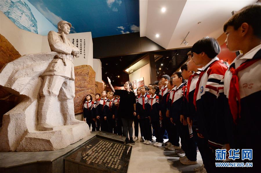 4月2日,河北省邯郸市农林路小学学生在晋冀鲁豫烈士陵园左权将军纪念馆参观。新华社发(郝群英 摄)