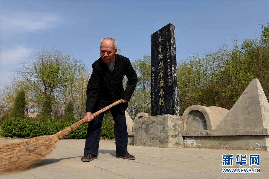 4月3日,马东春在“战地医院纪念园”内打扫卫生。新华社记者 朱旭东 摄