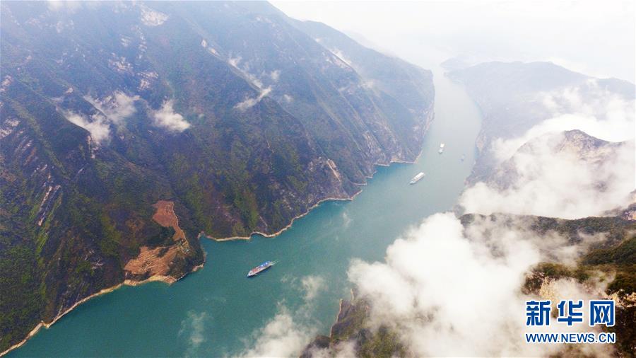 这是3月28日无人机拍摄的重庆奉节瞿塘峡一带景色。新华社记者王全超摄