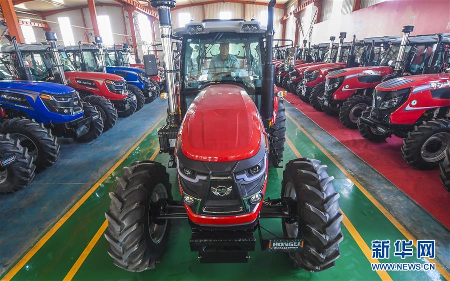 4月3日,河北宏力重工有限公司技术人员进行大型拖拉机整机调试。 近年来,河北景县大力发展农机制造产业,持续提升农机制造和科技创新水平,着力推动传统农机制造产业转型升级。生产的大型农用拖拉机等农机产品不仅满足了本地农机市场需求,还销往全国多地。 新华社记者 李晓果 摄