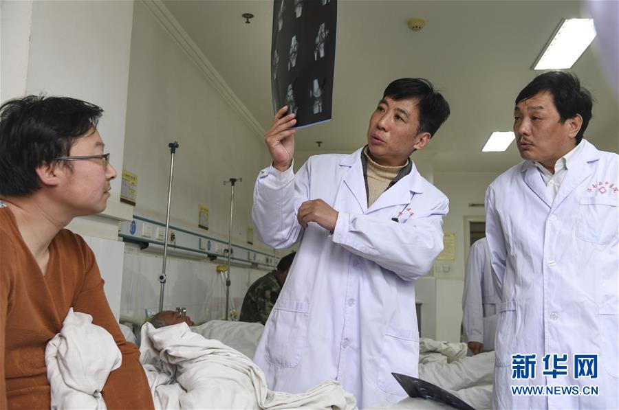 4月2日,江宁区第二人民医院骨科主任匡永利(中)在洛南县中医院住院部为病人会诊。 地处秦岭深处的陕西省洛南县是国家级贫困县。为了让困难群众早日摘掉“穷帽”奔小康,江苏南京市江宁区在对口帮扶洛南县过程中,把产业扶贫作为重要切入点,共确定扶贫协作对口帮扶项目70项,总投资21亿元,有效拓宽贫困户增收途径。 2017年以来,南京市江宁区帮扶洛南县实施产业化扶贫、社会民生和医疗事业、示范性扶贫专业合作社、村集体经济专业合作社及人才培训和劳务输出等项目45个,已投入资金1.17亿元,带动近1.8万户贫困户增收。 随着一批批产业项目落地实施,一件件民生实事惠及群众,江宁“加速度”助推洛南脱贫攻坚驶入“快车道”,秦岭深处群众向小康生活稳健迈进。 新华社记者 陶明 摄