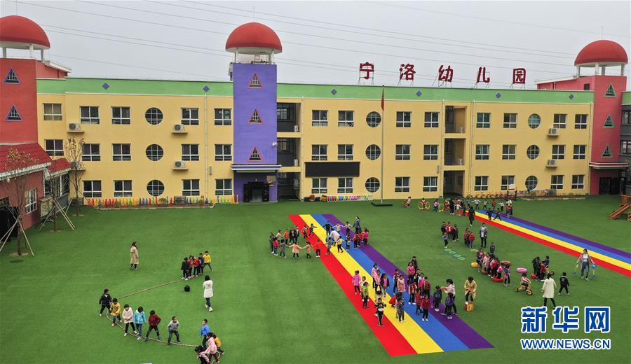 4月2日,洛南县宁洛幼儿园的小朋友们在做游戏。江宁区出资730万元,在洛南县最大移民搬迁小区建设的宁洛幼儿园有效解决移民搬迁点260多名幼儿入学难题。 地处秦岭深处的陕西省洛南县是国家级贫困县。为了让困难群众早日摘掉“穷帽”奔小康,江苏南京市江宁区在对口帮扶洛南县过程中,把产业扶贫作为重要切入点,共确定扶贫协作对口帮扶项目70项,总投资21亿元,有效拓宽贫困户增收途径。 2017年以来,南京市江宁区帮扶洛南县实施产业化扶贫、社会民生和医疗事业、示范性扶贫专业合作社、村集体经济专业合作社及人才培训和劳务输出等项目45个,已投入资金1.17亿元,带动近1.8万户贫困户增收。 随着一批批产业项目落地实施,一件件民生实事惠及群众,江宁“加速度”助推洛南脱贫攻坚驶入“快车道”,秦岭深处群众向小康生活稳健迈进。 新华社记者 陶明 摄