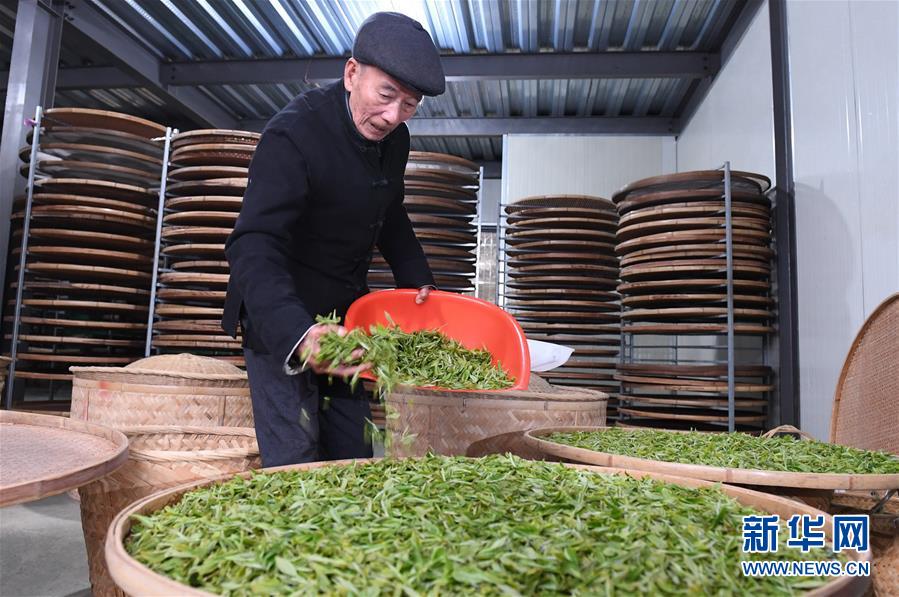 4月2日,一位老人在方家山畲寨生态白茶专业合作社联合社的合作企业福鼎太姥方家山白茶有限公司晾晒茶青。