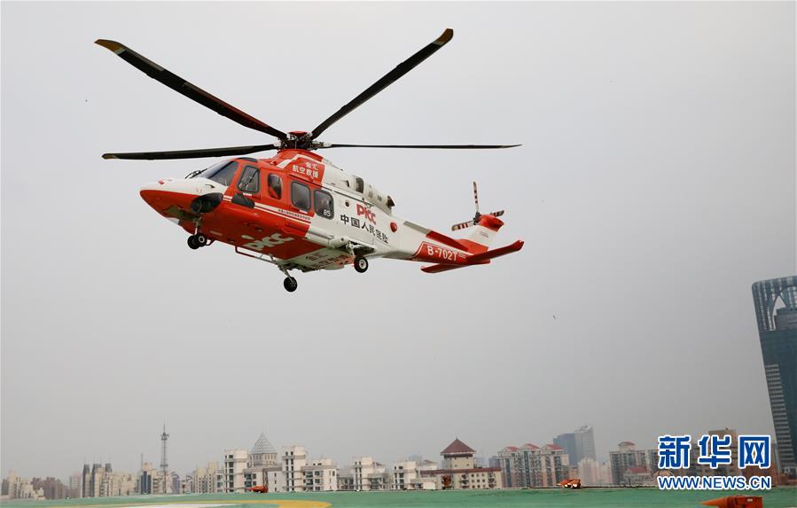 4月3日,载有患者的救援直升机准备降落在上海瑞金医院顶楼停机坪。 当日,一名重症胰腺炎患者由浙江舟山医院搭乘金汇航空救援直升机,转院至上海瑞金医院接受抢救。直升机空中救援将原本地面转运所需的三个半小时行程缩短为45分钟,为救治重症患者抢占先机。 新华社记者 方喆 摄