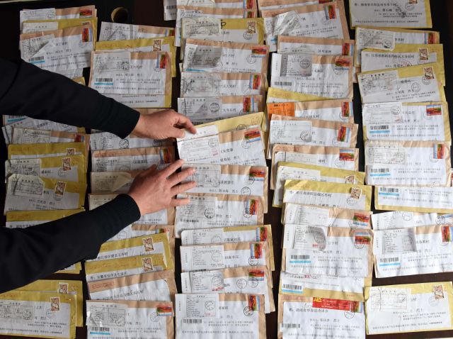 3月20日,张景宪在整理多年来他收到的退信。