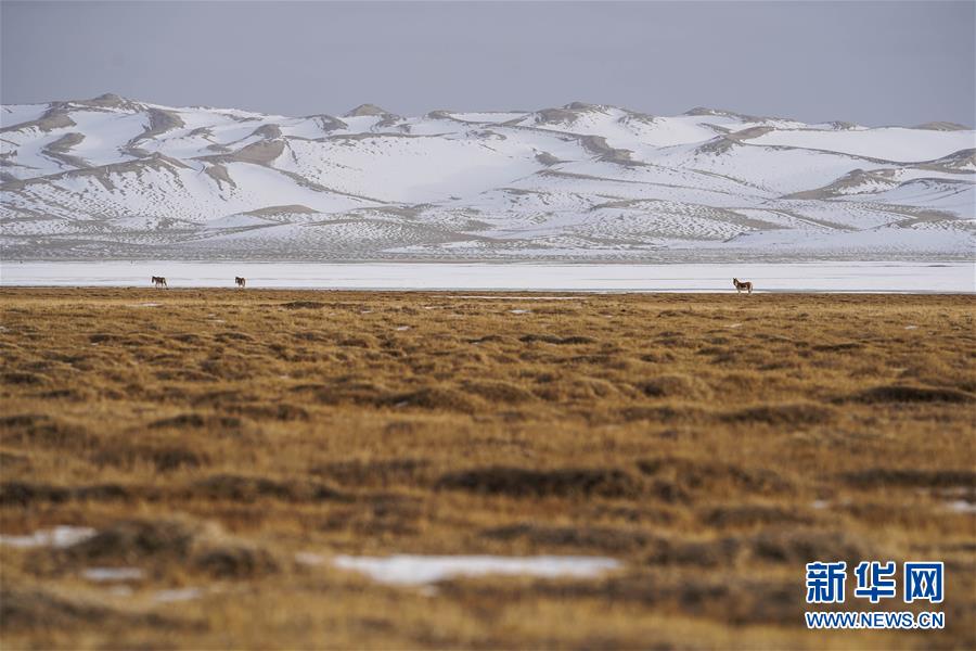 藏野驴活动在阿尔金山国家级自然保护区依协克帕提湖畔(4月1日摄)。新华社记者 胡虎虎 摄