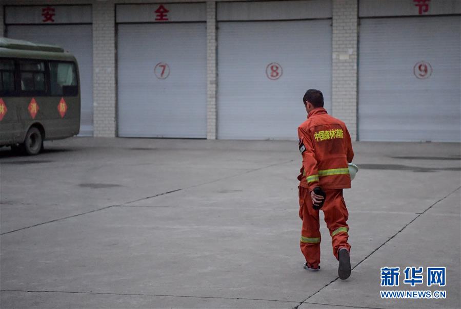 4月3日,四川森林消防总队凉山州支队西昌大队一名参与扑火的消防员走在大队院内。新华社记者 张超群 摄