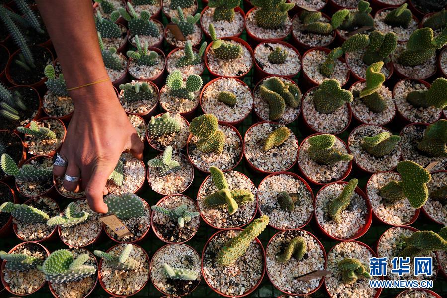这是3月21日在埃及吉萨省拍摄的花卉展上的仙人掌。 新华社发(艾哈迈德·戈马摄)