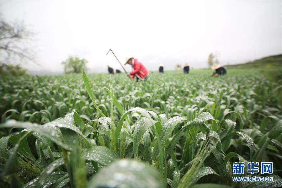 4月4日,贵州省毕节市大方县长石镇杨柳村村民在地里劳作。新华社发(罗大富 摄)