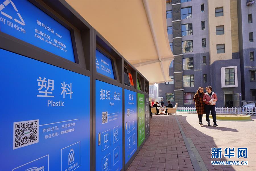 4月3日在河北省唐山市仁泰里尚平社区拍摄的多功能智能垃圾柜。新华社发(董军 摄)