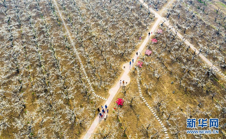 这是阜城县霞口镇刘老人村的梨花园美景(4月4日无人机拍摄)。新华社记者 李晓果 摄