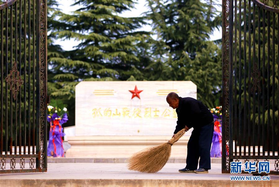 4月4日,郭王所在打扫烈士公墓。新华社记者王晓摄