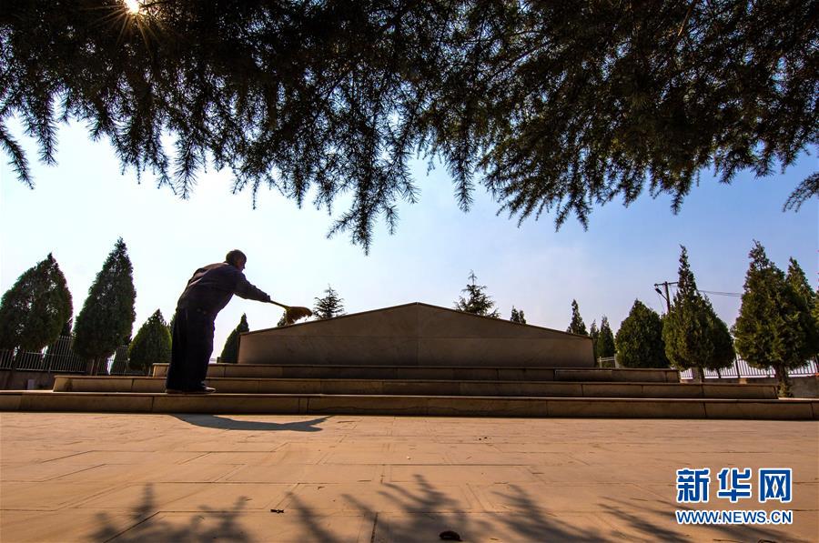 4月3日,郭王所在打扫烈士公墓。新华社记者王晓摄
