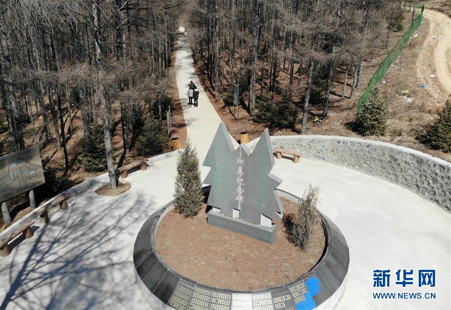 市民来到吉林省辽源市树葬纪念园祭奠逝去的亲人(4月3日无人机拍摄)。 新华社记者林宏摄