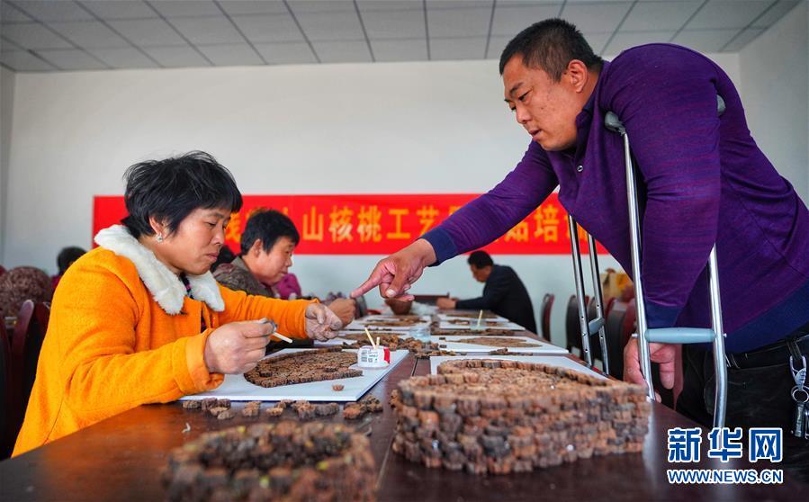 4月4日,孙鹏涛指导村民制作工艺品。新华社记者 邢广利 摄