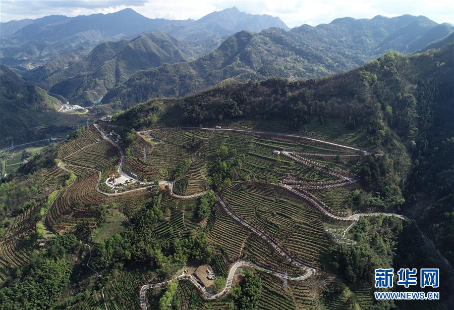 平利县长安镇高峰村洪福茶山(4月4日无人机拍摄)。新华社记者邵瑞摄