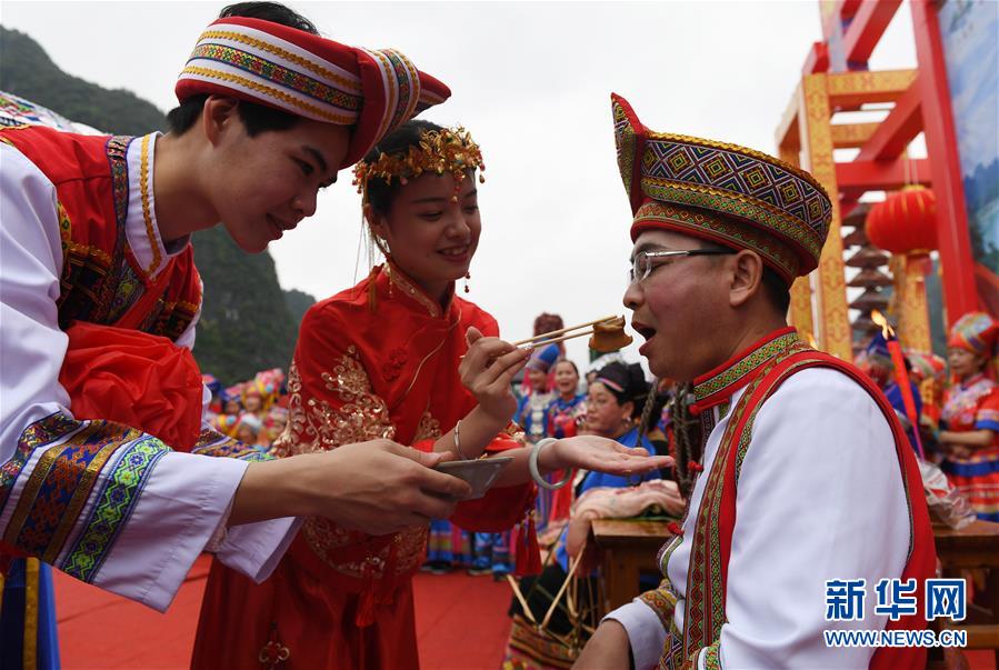 广西都安:婚俗表演展壮族风情