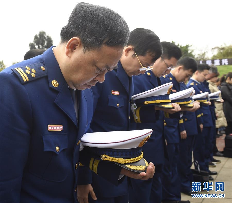 4月4日,参加悼念活动的人们为烈士默哀。 当日,四川木里森林火灾扑救中英勇牺牲烈士悼念活动在西昌市举行。 新华社记者 刘坤 摄